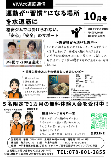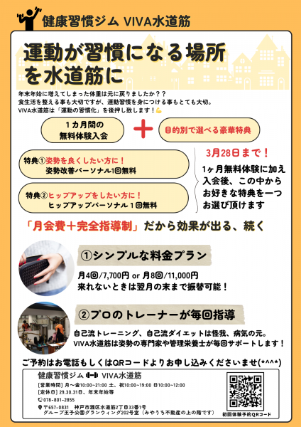 健康習慣ジムVIVA水道筋です。